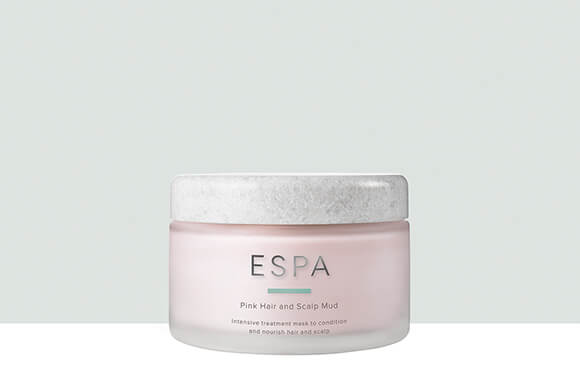 ESPA Pink Hair and Scalp Mud Mask är en bästsäljande produkt som innehåller en blandning av röd och vit lera för att uppnå den vackra rosa nyansen. Den kan användas under natten för att ge näring och vårda håret medan du sover.