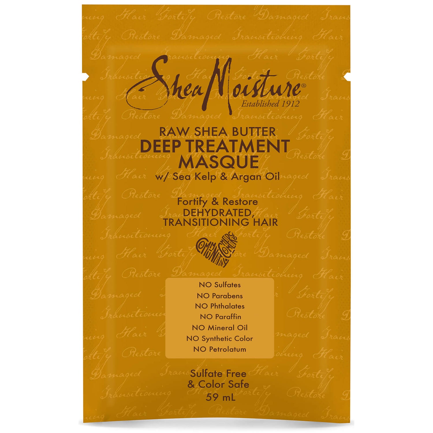Denna hårinpackning är berikad med en återuppbyggande blandning av sheasmör, arganolja och mineralrik havstång (kelp). Den verkar för att förbättra hårets elasticitet och återställa lyster, samtidigt som den slätar ut hårets fibrer och mjukgör hårbottnen. Förvänta dig ett mjukt, smidigt hår med massor av fukt och glans.